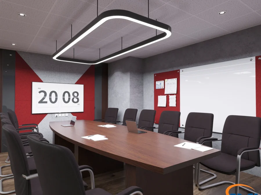 - Nội thất phòng họp: 1 bàn cỡ lớn và số lượng ghế tùy thuộc. Bên cạnh đó là các thiết bị phục vụ cho công việc họp hành của doanh nghiệp như máy chiếu, thiết bị âm thanh, ánh sáng,… được thi công sao cho đồng bộ.